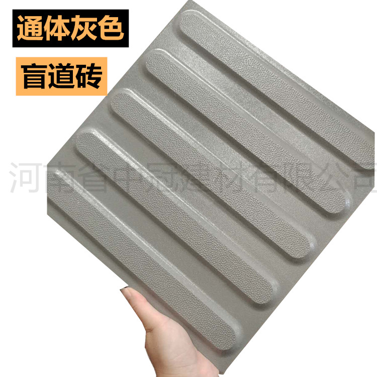 20厚止步行進盲道磚有黃色和灰色兩種全瓷盲道磚,黃色盲道磚用于高鐵站臺比較多,灰色用于地鐵站口和市政人行道路居多,質量都是非常好的,不會有脫色現象,因為是瓷質的所以耐磨是肯定 的,而且考錄到防滑性能,所以盲道磚上都有一些小顆粒,起到防滑的效果,尺寸也是經過磨邊不會有誤差的,這點可以完全放心的。