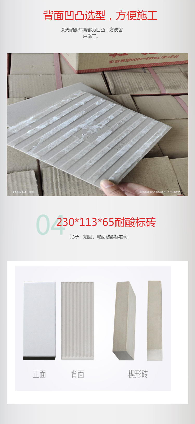 耐酸磚的國家標準是GB/T8488-2008.主要的參數有:耐酸度,吸水率,彎曲強度,耐急冷急熱性。中冠生產的耐酸磚完全符合耐酸磚的國標,并且可以提供檢測報告。其實選擇耐酸磚的標準主要有兩個:由于耐酸磚的主要成分是二氧化硅,那么我們就可以從成分上觀察耐酸磚是否含有二氧化硅元素。其次可以從外表來看,耐酸磚是否存在裂紋或殘缺,或者是否有斑點、缺釉、干釉等現象出現,因為這些問題都是施工過程中的不達標導致的。后呢我們可以從耐酸磚的規格上判斷,耐酸磚的規格都是嚴格按照一定的尺寸來進行加工的,這樣便于鋪設時候的整齊美觀,如果出現規格尺寸大小不一致的情況也是耐酸磚不達標的表現之一。