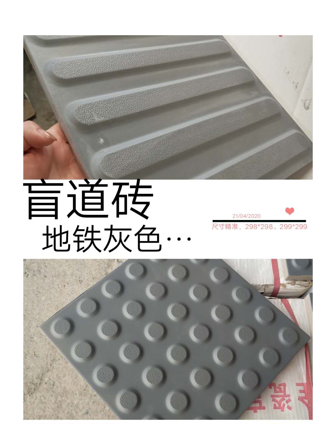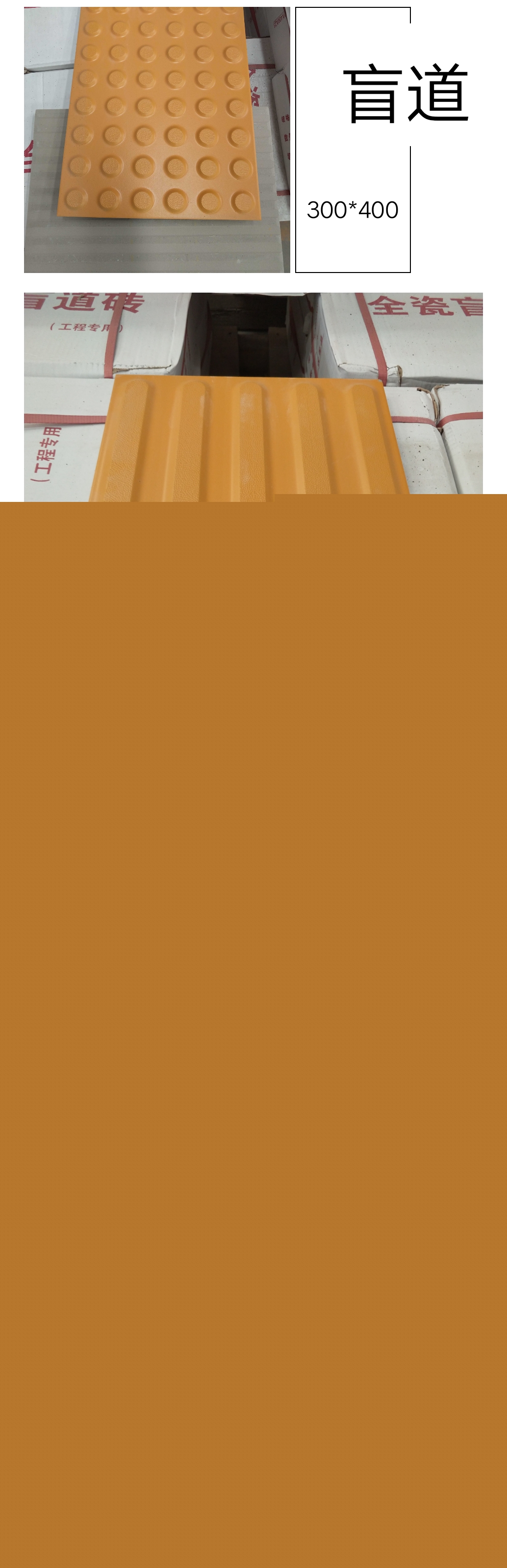 盲道磚規格:298*298、299*299、300*400、400*400、398*398(其它規格可以定制),白色安全線規格600*100